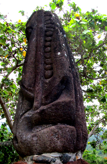 An ancient basin carved into a rock is the last tiki and then it's down this