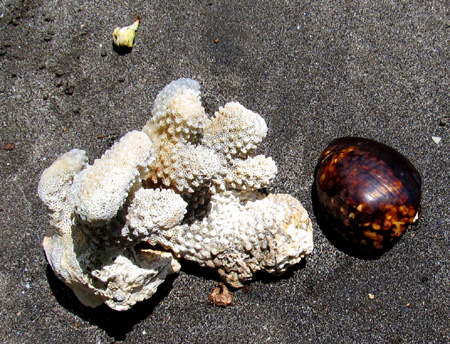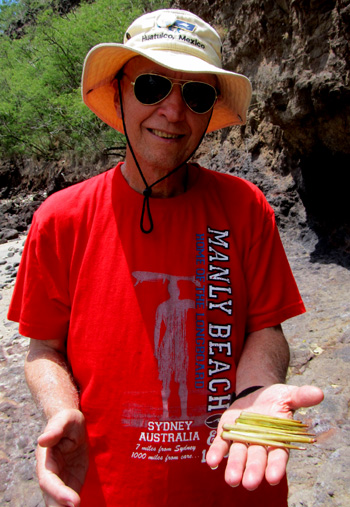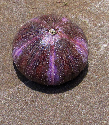 A spiny urchin and a bunch of pencil urchin spines that Dean found