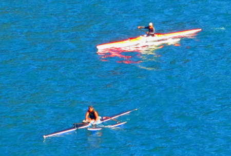 The locals on their out-rigger canoes caught rides on the wakes the ship's tenders and there were several