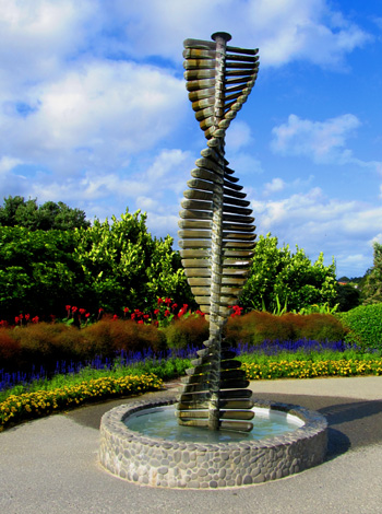 A water feature with worms or snakes made of stone.