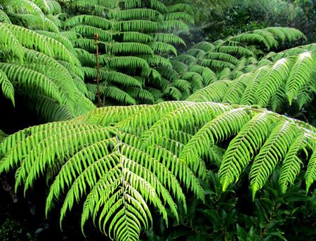 We saw many ferns and tree ferns. We liked the wide arbor covering