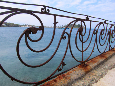 A peace park near the dock with its dove and olive branch sculpture/fountain.