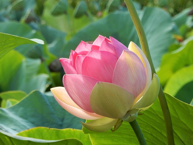 A perfect lotus flower (Nelumbo nucifera) growing in a