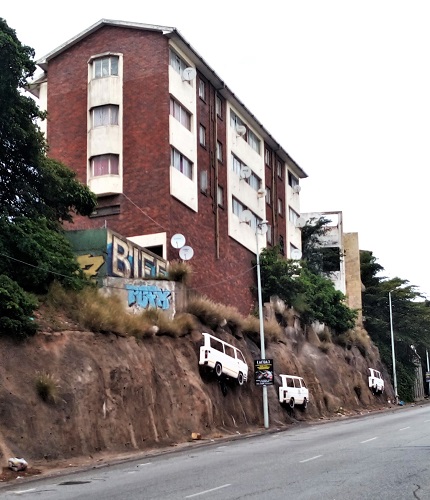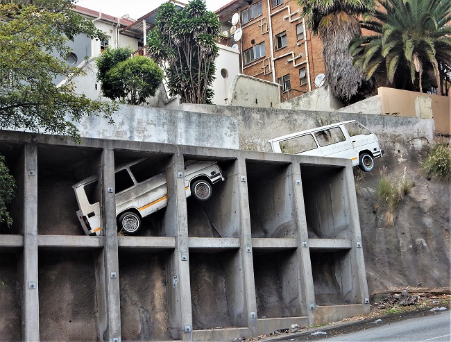 of half-vans mounted on the rocky outcrop.