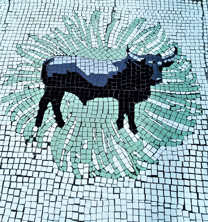 extensive mosaic is in front of the King Edward Hotel.