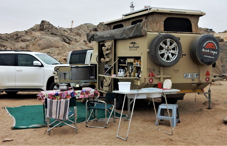 A rugged-looking and compact camping rig. The stove pulls out