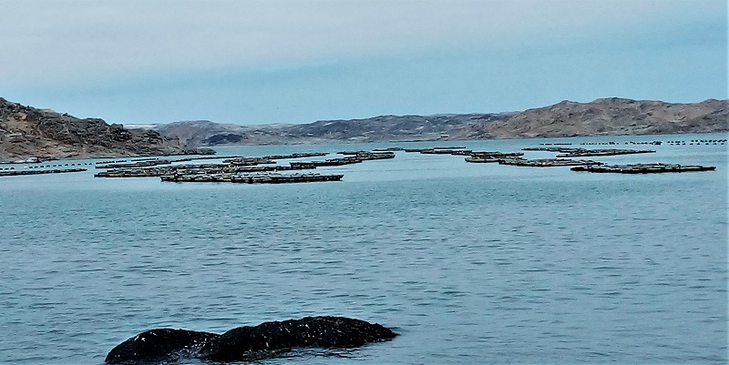 In the bay behind the church, there were a few types of aquaculture