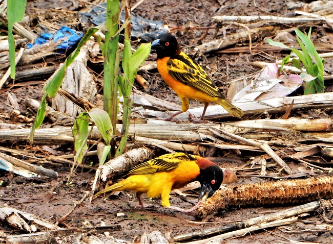 Village Weavers (Ploceus cucullatus) gathering nesting