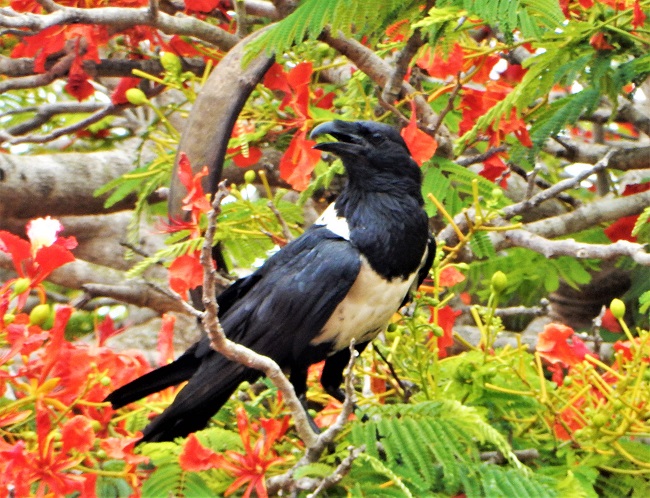 A Pied Crow (Corvus albus) in an acacia tree.