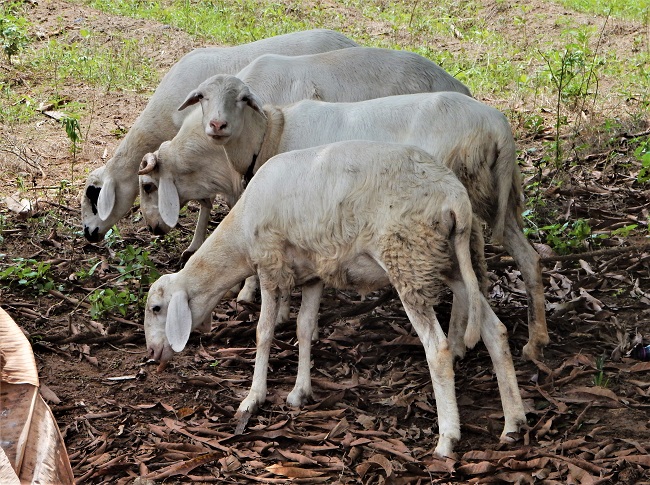 there were goats that climbed the dirt hill on one side of the