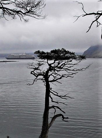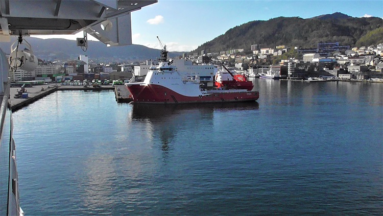 It was a tender port, so the ship was on anchor outside the harbor.