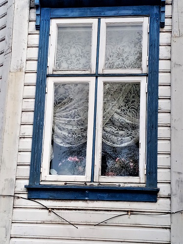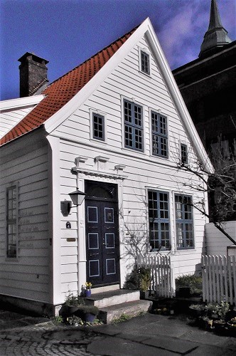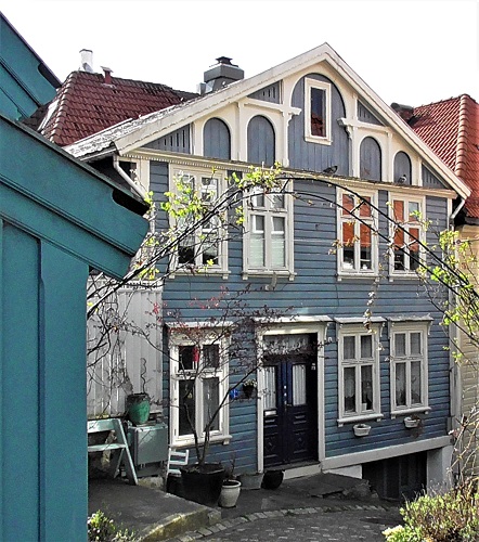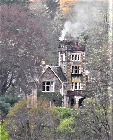 Old houses with slate roofs and multiple flues--probably one for