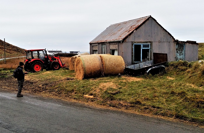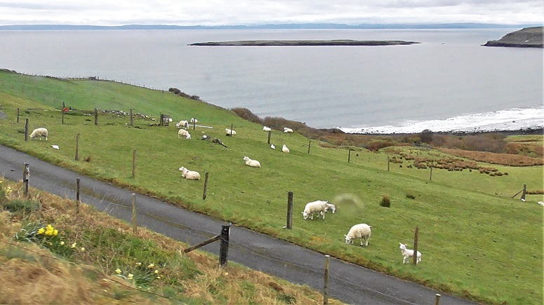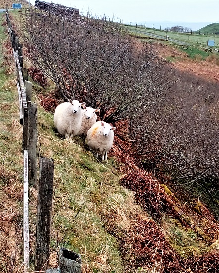 Three loose sheep were wary of us. We walked down this country
