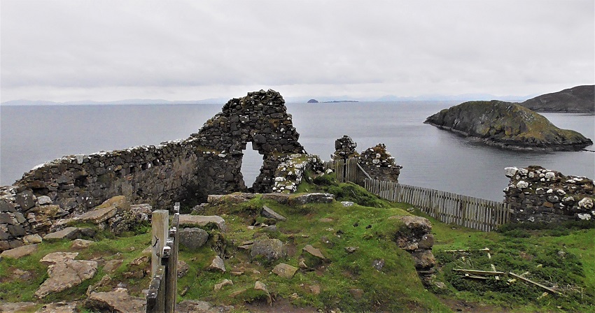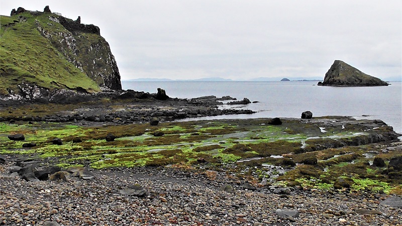 The castle ruins were on that steep rocky point ahead of us.
