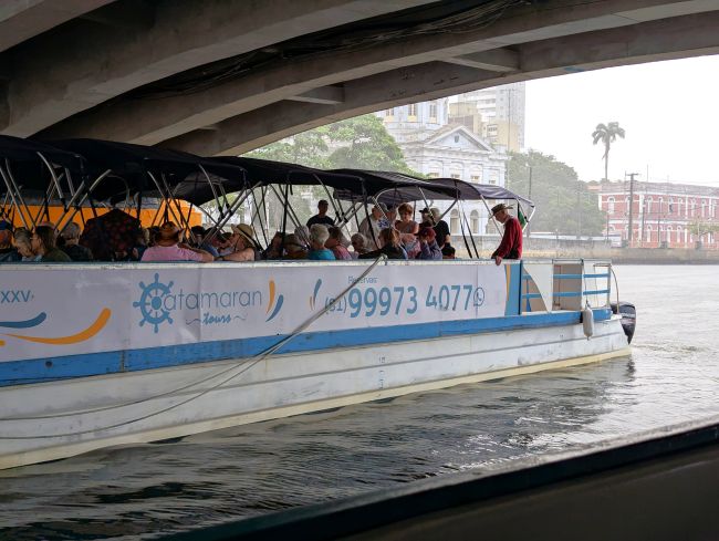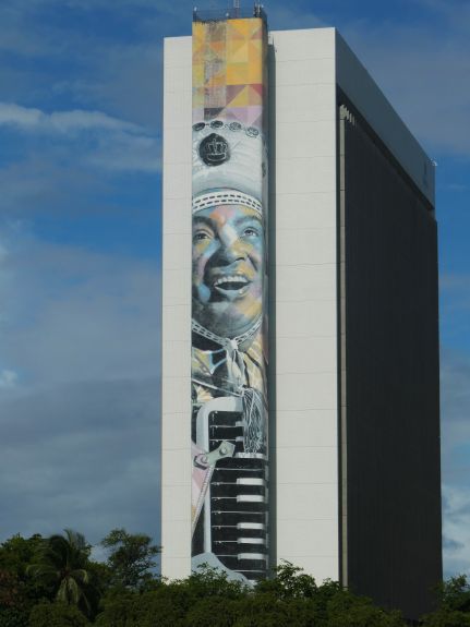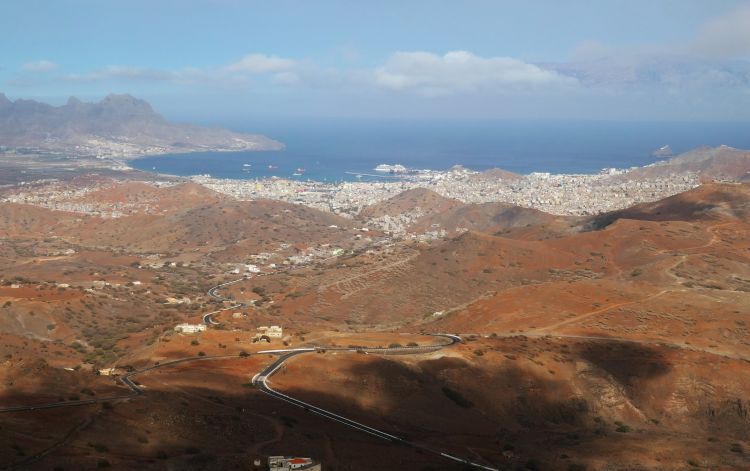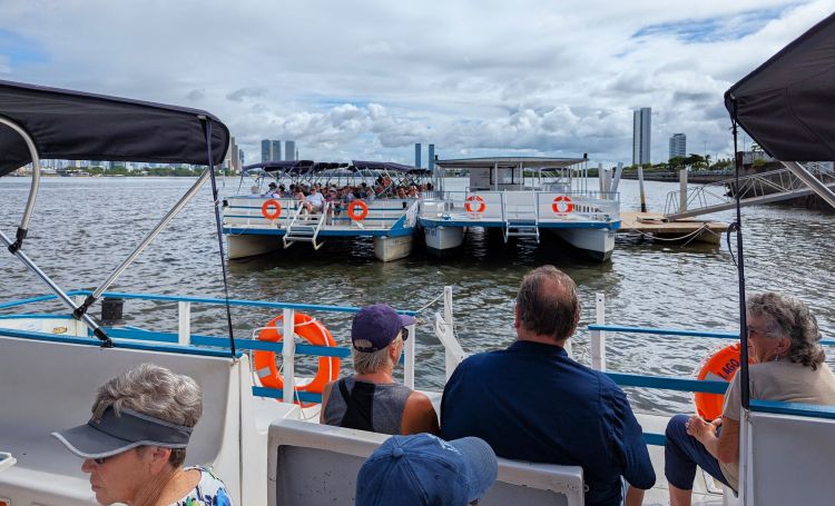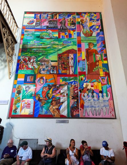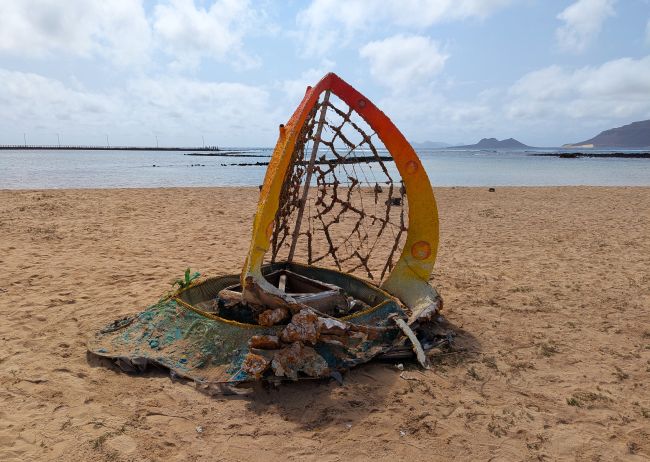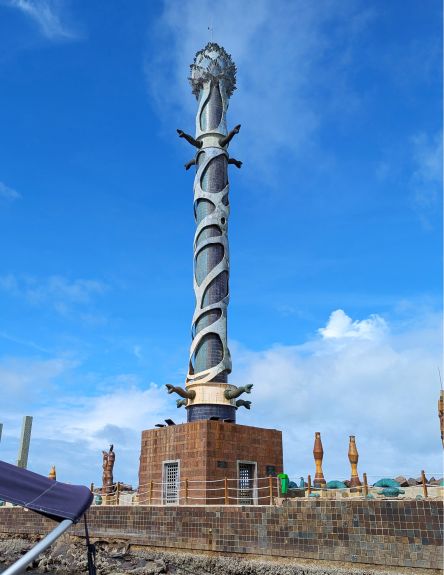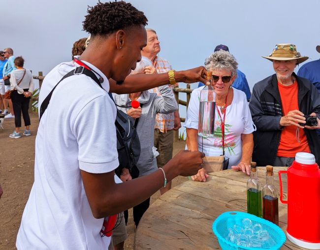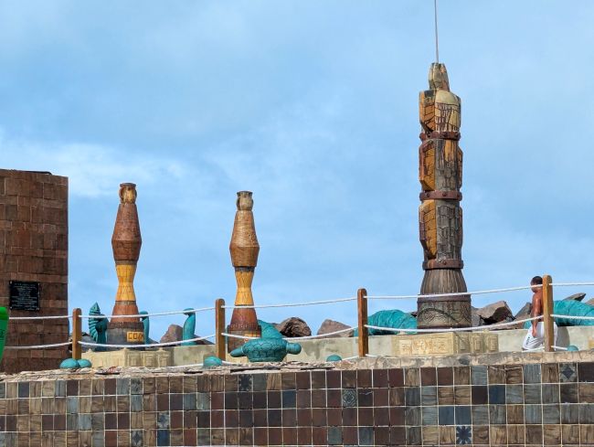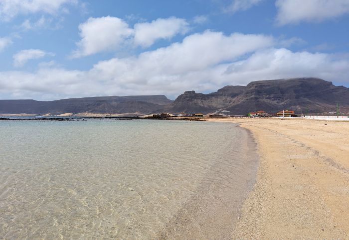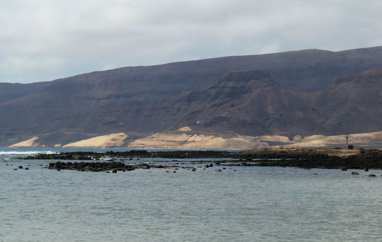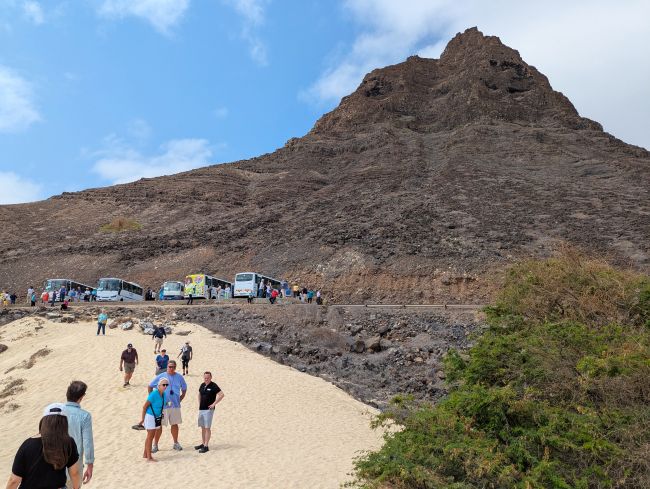 Then we stopped at a beach. The tan sand on these dark volcanic