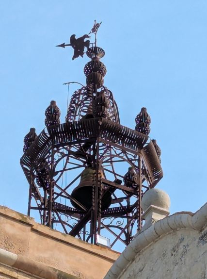 The open bell tower is unique.